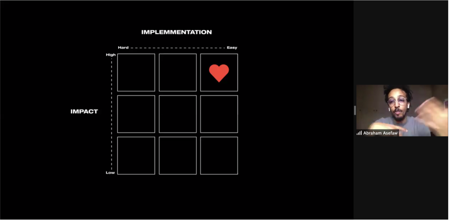 A highlight of the week was an ideation workshop run by Abraham Asefaw was a great way to learn some techniques for the cohort to implement into their creative process when approaching the brief.