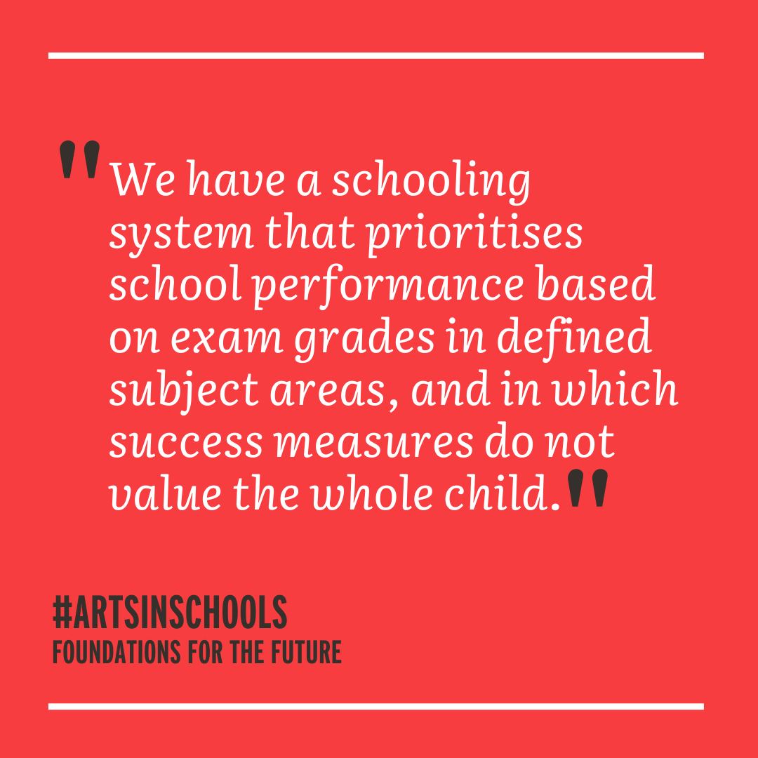 Based on research, including a series of roundtable discussions with the heads of schools and multi-academy trusts, teachers, academics, arts educators and young people, the report finds that the arts are vital for young people’s intellectual and personal development, but are marginalised in today’s school system, which itself requires a major overhaul.